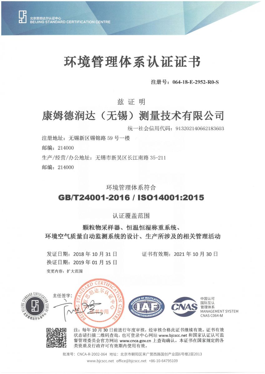 康姆德潤達(dá)(無錫)測量技術(shù)有限公司已順利通過GB/T24001-2016/ISO14001:2015環(huán)境管理體系認(rèn)證。