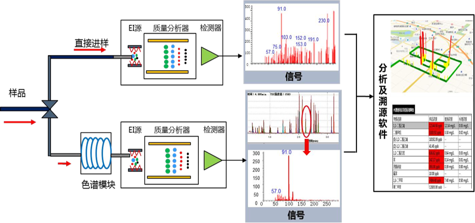 雙通道質(zhì)譜分析系統(tǒng)擁有雙通道質(zhì)譜模塊,將直接進(jìn)樣質(zhì)譜法和 GC-MS 法相結(jié)合,優(yōu)勢互補(bǔ),建立雙通道分析模式,結(jié)合“快、真、準(zhǔn)、全”的技術(shù)優(yōu)勢,用于VOCs 快速準(zhǔn)確定性定量。具備分析速度快、檢測靈敏度高、定量準(zhǔn)確度高等優(yōu)勢。