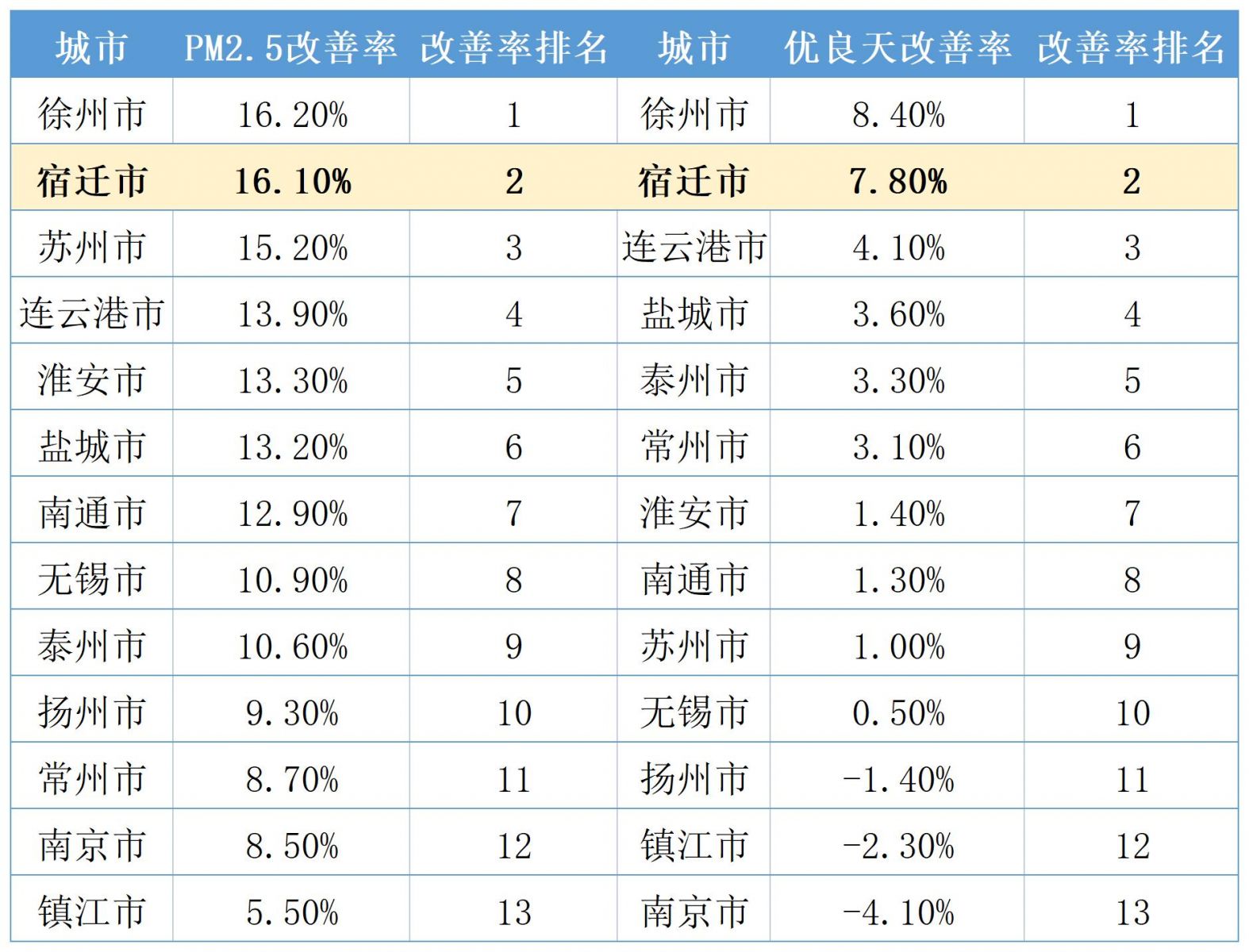 德睿專家團(tuán)隊(duì)助力宿遷市PM2.5濃度改善幅度和優(yōu)良率改善幅度均在江蘇省排名第二。
