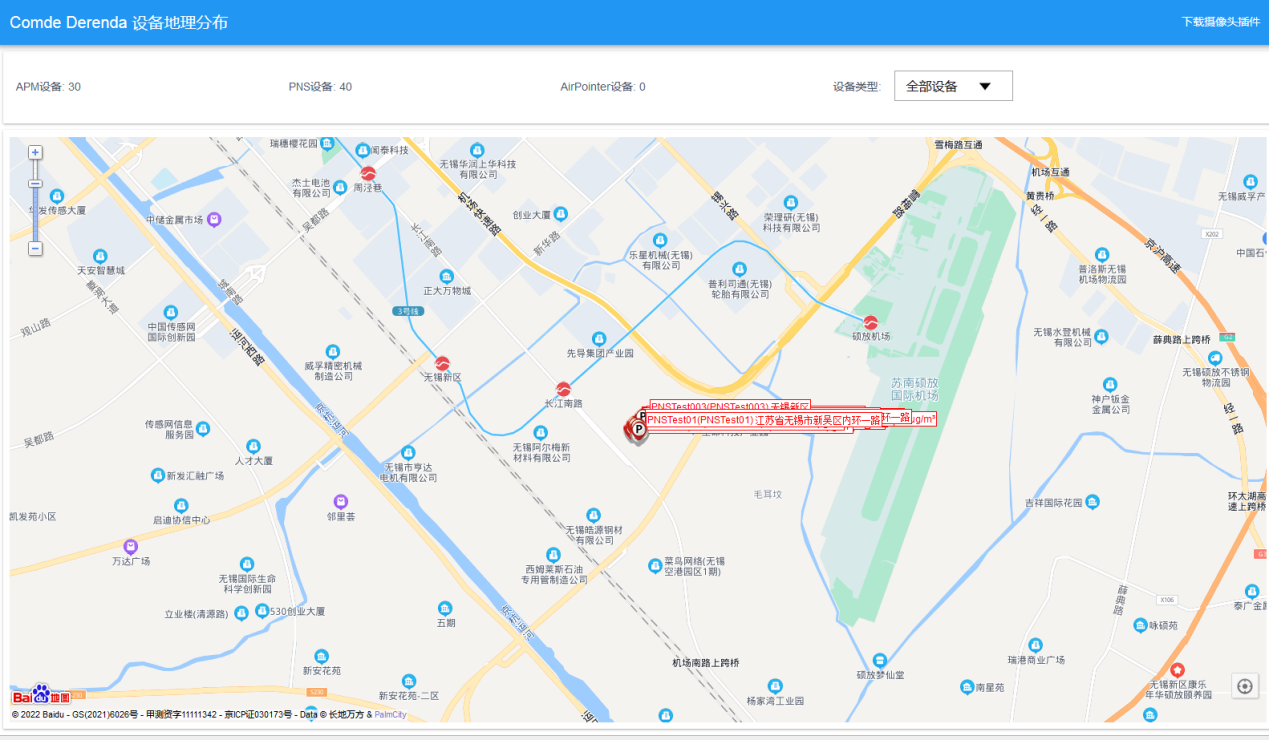 設(shè)備地理分布界面會(huì)顯示用戶下所有獲取到GPS的設(shè)備的地理分布,支持登陸點(diǎn)自動(dòng)定位,手動(dòng)定位,地圖縮放,鼠標(biāo)滑輪縮放,圖標(biāo)拖拽